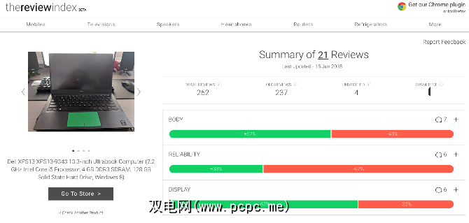 The site analyzes all the user reviews for a certain product, ranking them based on certified purchases. It also runs a spam test to spot fake reviews and weed them out. Once it has all the information, it turns that into data about pros and cons. For example, with a laptop, you will find how positive or negative people have been about its screen, reliability, body, etc. The simple bar graphs make it much easier to figure out the popular opinion.