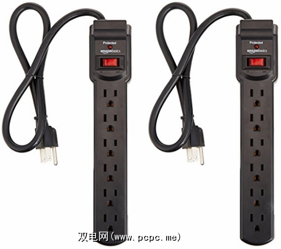 Amazon提供了多种电涌保护器;例如,其中一个包括USB端口和典型的插头。但是,我们建议使用六插座电源板。它具有两英尺长的电缆和200焦耳的保护。