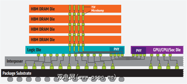 这种安排从表面上看类似于智能手机制造商在CPU模具顶部堆叠RAM的方式。 HBM可以减小GPU的尺寸,改善热量分布,降低功耗,降低延迟,并且-顾名思义-显着增加内存带宽。