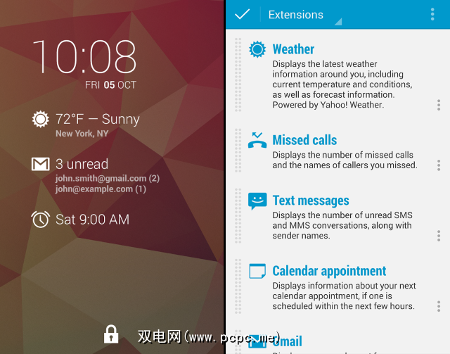 该小部件可与大多数锁屏配合使用,以美观而实用的方式提供来自手机的通知。 DashClock扩展使它可以与大多数流行的应用程序挂钩,从而使您能够以有意义的方式与它们进行交互,而无需解锁手机。