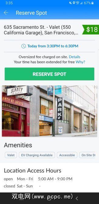 SpotHero可让您提前选择停车位,这意味着价格更便宜。只需输入您要前往的位置以及您需要停车的时间即可。然后,该应用将显示包含所有可用停车位及其价格的地图。