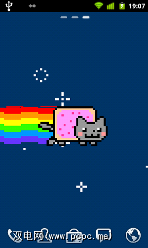 Android开发者“ Existential Fashion Disaster"不仅具有出色的它的名字,但在模因中也极具品味,就像他们的Pop Tart Cat动态壁纸应用程序清楚显示的那样:该应用程序完全可以满足您的期望:Nyan Cat,像往常一样喜出望外,在屏幕上无处可跑。 ?Nyan cat在那儿。阅读Twitter提要后点按“主页"按钮吗?Nyan cat在那儿奔跑!
