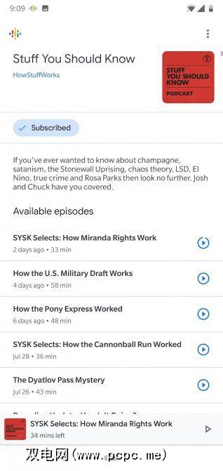 您还可以直接在Google应用中关注并收听自己喜欢的播客。只需搜索特定曲目,您就会看到曲目列表。点击关注按钮以获取供稿中的更新,然后点击播放按钮以开始收听。
