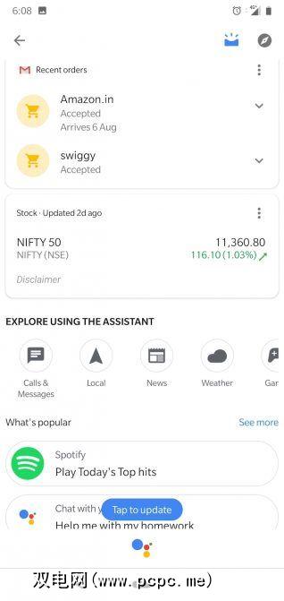 要了解您所在位置的天气预报,您有两个选择-Google Assistant或Google Feed,可以在其中使用该应用程序的主页。轻按卡右侧的三点菜单,您还可以切换温度单位或启用当前或家庭位置的更新。