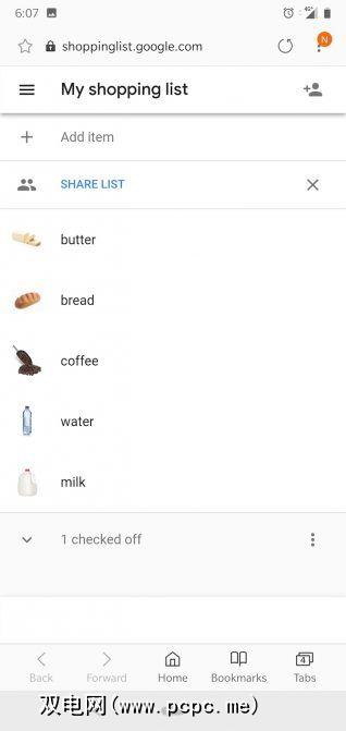 Google应用程序还允许您构建购物清单。但是,没有内置的迷你应用程序。取而代之的是,您必须依靠Google助手或转到与该应用程序设置中的某个选项怪异链接的网络应用程序。希望Google会对其进行更新并尽快提供本机视图。