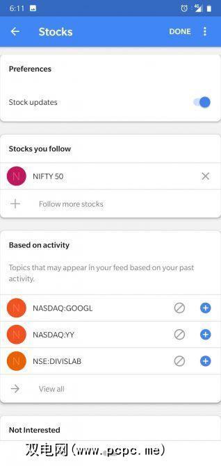 类似地,您可以通过Google Feed跟踪股票汇率和更新。进行与上述相同的自定义过程,但是打开 Stocks 的设置,而不是 Sports 。通过搜索,您甚至可以比较多个股票。