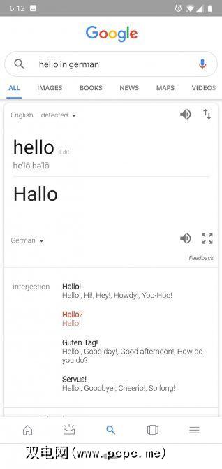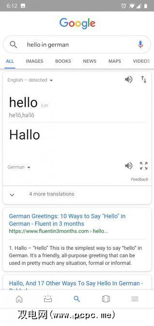 您也可以从主Google应用访问Google Translate的迷你版。您可以通过简单地搜索短语来翻译短语,例如法语的你好。可以使用听写功能,并且可以选择将翻译后的文本显示给外国人。
