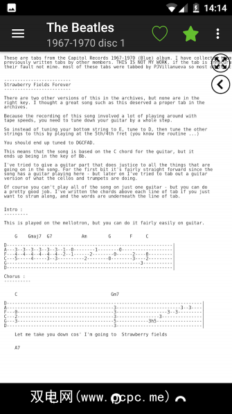 该应用具有和弦和五线谱(一种简化的吉他乐谱形式),可播放80万首音乐。它包括一个交互式和弦功能,可在需要时为您显示正确的指法。而且,如果您升级到专业版,则可以解锁自动滚动功能,使播放时标签页在屏幕上向上移动。