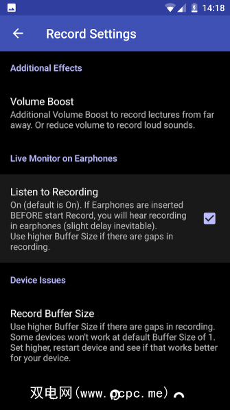 最后,这是一个用于录制音乐的应用程序。但是,什么使它比其他所有可用于Android的录音机更好呢?简单—插入耳机即可随身监听录音。它对音乐和人声都非常有用。