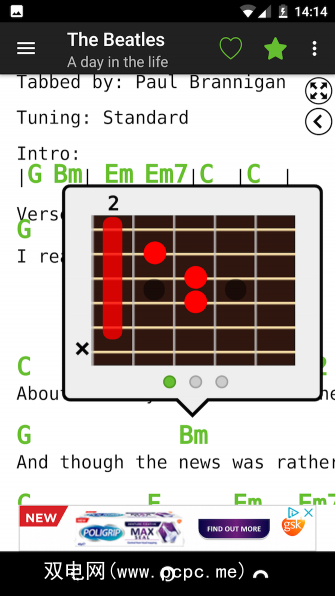 每首歌曲都需要在屏幕上添加很多信息,因此,吉他大和弦和标签在大屏幕手机或平板电脑上最有用。