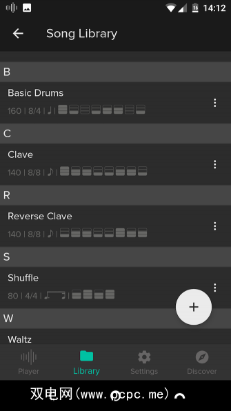 该应用程序支持一个乐曲库,您可以在其中保存您的配置,然后将它们组合到演出时的设置列表中。您甚至可以将屏幕设置为在每个节拍上闪烁,而不必听音调。