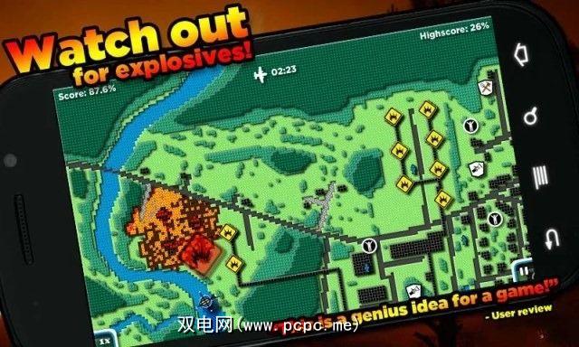 实时策略标题,外观有趣。我不会称其为像素化或复古的-它看起来更像是Lego装置的俯视图。细微的阴影使地形变得“流行"-很容易看到丘陵和山谷在哪里。主题与图形样式一样独特:与消防有关。是的,这是一场格斗游戏,但是你的敌人是火,而不是其他人或国家。