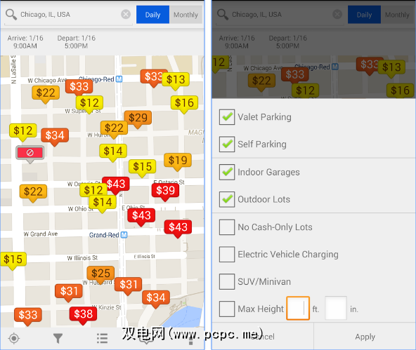 最佳停车服务涵盖了美国105个城市和115个机场,并列出了每个城市的价格。