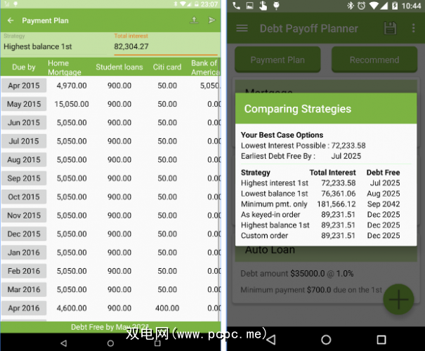 下载“债务清算计划器"以跟踪您的债务削减成就。该应用程序支持多种行之有效的策略,并为您提供所有您想要的图表,投影和图形。