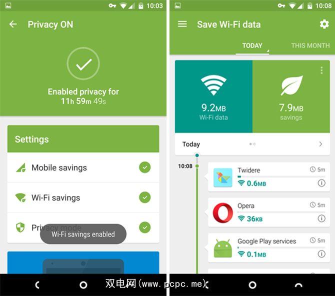 任何未加密的流量都将通过Opera的服务器并通过其压缩算法运行,然后再进入设备。这意味着您无需在每个应用程序中寻找一种特殊的数据保存模式。只需打开Opera Max,您最终将节省30%到50%的数据(取决于您使用的应用程序)。