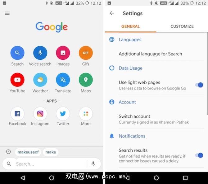 Google Go是我们都在Android上熟悉的Google应用的轻量级版本。此应用程序的重量为5MB,旨在帮助您在带宽特别低的情况下浏览网络。