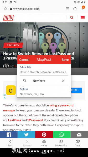 说您遇到了达拉斯最好的餐馆列表。您不仅可以在书签上添加书签,还可以在MapPost上共享链接。下次您在达拉斯时,只需启动应用程序,然后查看为该位置保存的所有链接。更好的是,MapPost具有Web客户端,因此也可以在您的计算机上查看这些链接。