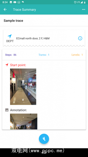 要映射新位置,您需要沿着从起点到终点的路径行走,该应用程序会自动跟踪您的位置步骤并建立详尽的指南。您还可以选择在各个步骤中添加语音输入或文本,以进一步使其他人更容易理解。