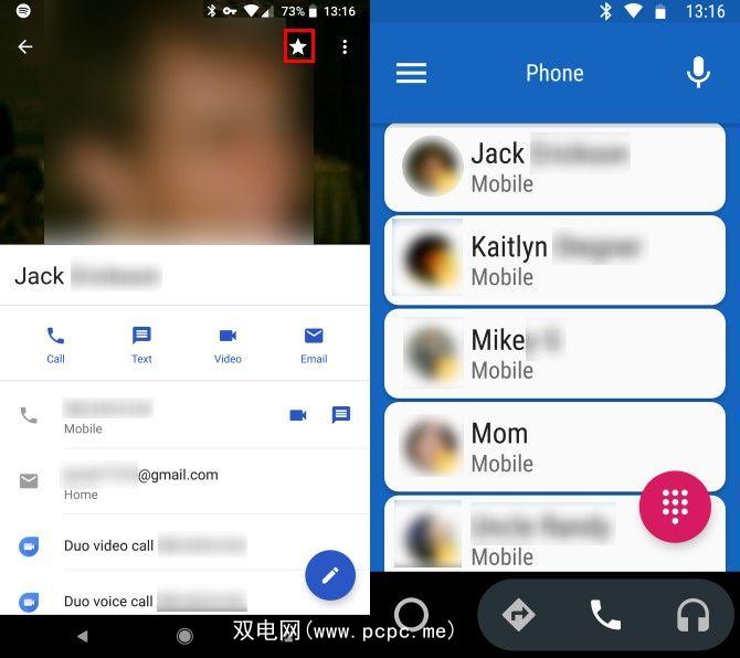 为此,只需打开您的联系人应用即可。选择一个联系人,然后点击右上角的星标图标。这会将它们添加到您的收藏夹。您会在联系人列表的顶部看到这些收藏夹,它们也会显示在Android Auto的电话标签中。