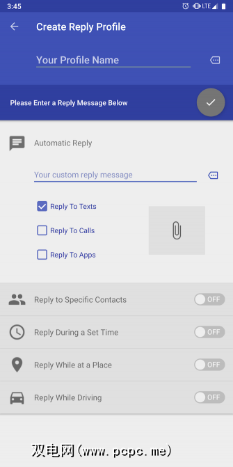 TextAssured是用于设置自动回复的多功能应用程序。它可以与即时消息服务,SMS文本甚至电话一起使用。此外,它还具有其他这些应用程序所缺少的许多功能,例如带有附件回复的功能。
