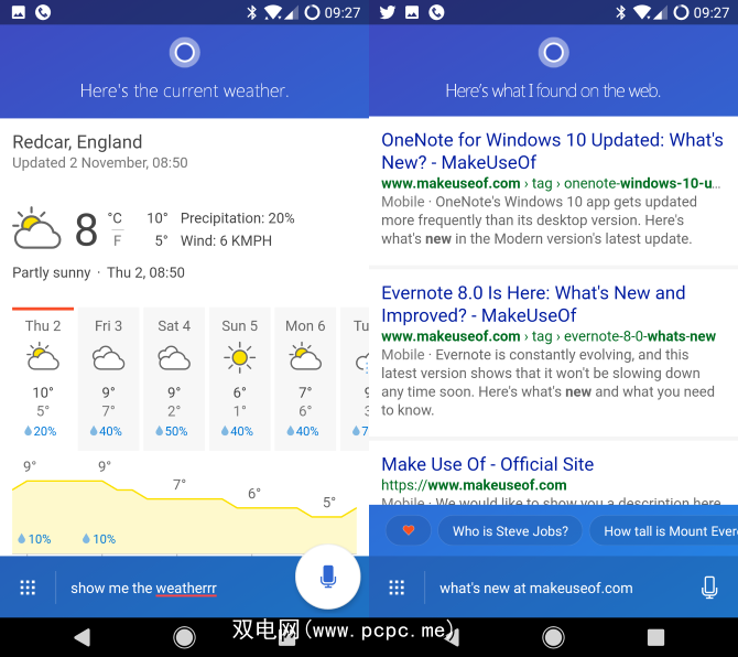 一旦安装,这些应用程序将与主机操作系统无缝融合。毕竟,Microsoft Launcher是一切的核心。例如,如果按住主页按钮打开Cortana,则可以获得在台式机上获得的所有信息和更新。从外观上看,这是一个非常接近的匹配,尽管它与Windows Phone版本不同,但仍感觉像Cortana。