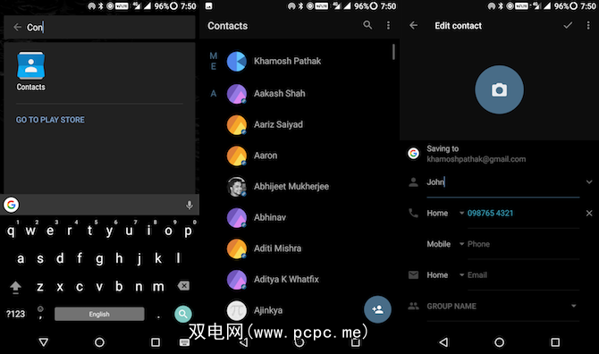 打开 Contacts 应用程序后,请查找 + (加号)图标。点击它以创建新的联系人。如果您是第一次这样做,系统会要求您选择一个默认位置来存储所有新联系人。您可以选择将其保存在手机内存,SIM卡或关联的Google帐户中。您应该选择Google帐户,因为该联系人将随后保存在Google的服务器上。即使您丢失了手机或对其进行了重置,也永远不会丢失您的联系人。