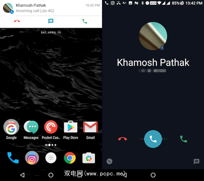 接受电话的操作通话因电话而异。如果您在接听电话时手机被锁定,通常必须从通话图标上向右或向上滑动才能接听电话。要下降,请向相反方向滑动。如果您在使用电话时接到电话,则可能会在屏幕顶部看到一个通知卡,其中显示了谁在打电话。