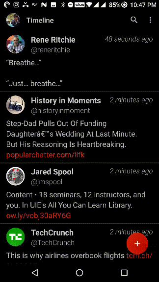 您还应尝试在屏幕上的其他位置滑动-不要害怕轻按并向左滑动!这是探索Android应用并了解新事物的唯一方法。如果您想返回,则始终可以使用“后退"按钮;如果事情真的很复杂,请从“最新记录"页面关闭应用程序,然后重新开始。