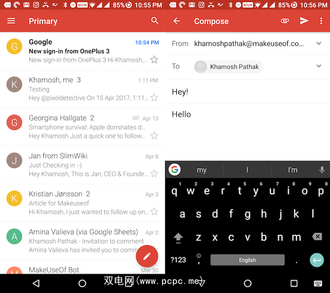 在Gmail等应用中,您会在右下角找到一个大的圆形浮动按钮。这是在应用程序中执行主要操作的快捷方式。在电子邮件应用程序中,点击以开始编写电子邮件。在社交媒体应用程序中,点击以编写更新。在笔记应用中,点击它即可开始编写新笔记。