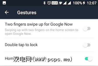 手势:在这里,您可以启用其他手势。当您已经进入主屏幕时,轻按主屏幕按钮将显示“搜索"功能。您也可以用两根手指向上滑动以打开Google即时页面。或在主屏幕上双击以锁定设备。