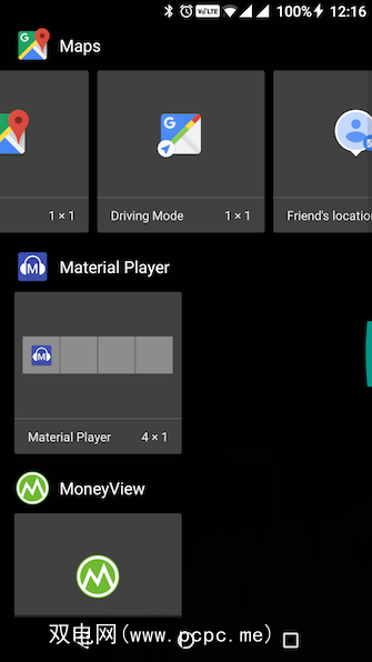每个应用都有其自己的部分,您可以水平滚动以查看所有可用的小部件