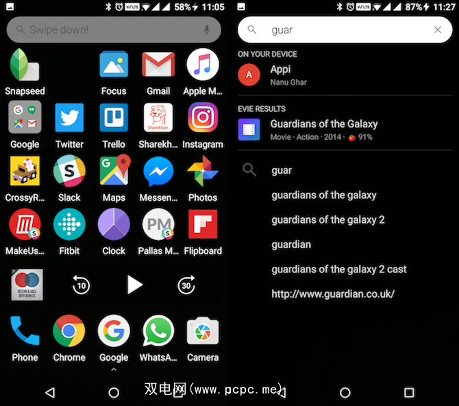 Evie是第一个使搜索功能浮出水面的Android启动器。而不是首先成为网络,它首先成为设备。而且,它确实可以很快找到您通常每天要搜索多次的内容:应用程序,联系人,音乐,位置。