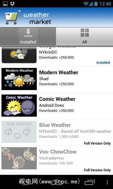 在开始之前,请务必注意,Fancy Widgets有两个版本:一个是免费版本,一个是Fancy Widgets。一付($ 2.50),名叫Fancy Widgets Unlocker。您不会在免费版本上找到广告;相反,它的局限性在于您可以应用的小部件外观和样式的数量。免费版本提供6种左右的时钟和天气皮肤供您选择,每种皮肤中还包含一些其他样式和小部件尺寸。在付费版本中,您的自定义选项将显着增加。
