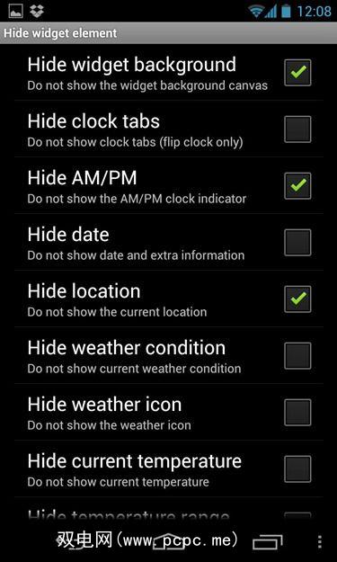 Appearance设置是让它真正有趣的地方。在这里,您可以设置时钟和天气的外观,控制字体颜色和背景透明度等内容,并确切确定要在主屏幕小部件上看到的项目。您甚至可以设置窗口小部件以显示当前的月相。