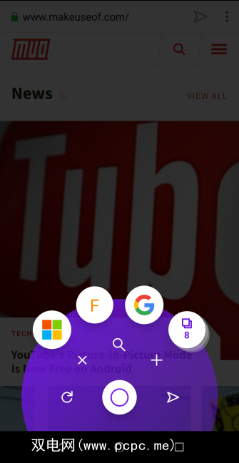 2。 Opera Touch:带快速操作按钮的单手浏览