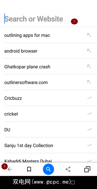 在搜索栏中键入查询,您会找到指向在新标签页中打开的链接 >在您的搜索结果旁边。然后,您只需向左或向右滑动即可浏览页面。要关闭标签页,您不必寻找很小的 X 按钮。 只需从搜索图标上向上滑动,标签就会关闭。再次点击以打开新标签。