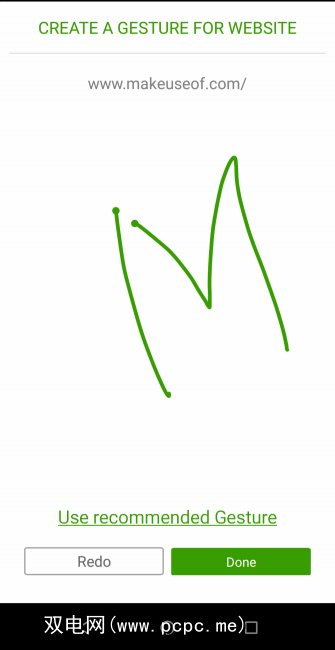 Type in the URL, then press the Add+ button. Now draw the gesture and press Done to save it. Ensure that you don’t create a duplicate gesture, as this will create a conflict. In the More Actions section, you can see and configure the gestures of commonly used browser actions.
