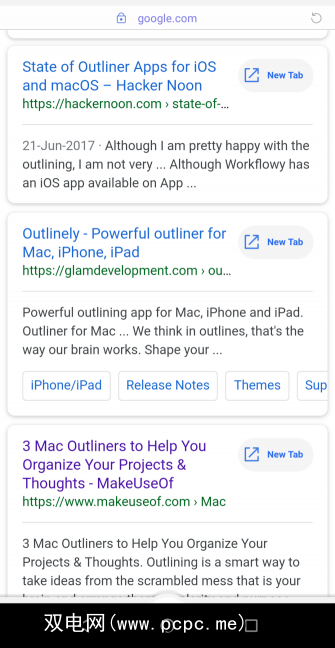 Cake Browser提供了全新的移动浏览方式,因为它以独特的方式结合了搜索和手势。输入搜索查询时,它不会自动提供通常的搜索结果,而是自动打开前三个自然搜索结果。然后,当您向右滑动时,它将打开下一页。