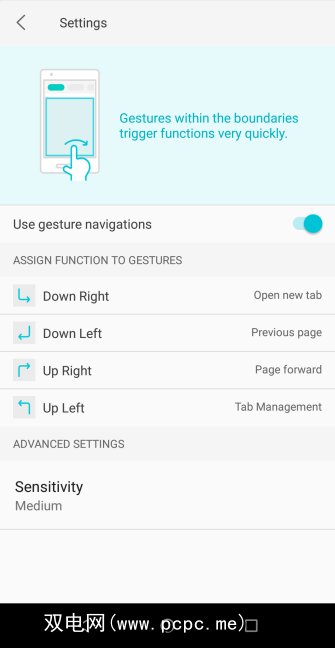 Opera Touch旨在用一只手浏览网页,因此默认情况下,它具有完整的手势支持。