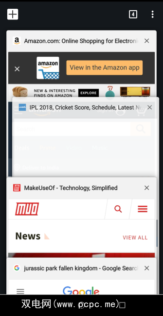 如果打开了大量标签,则很难看到每个标签的内容从标签概述中。不要理会概述; 在地址栏上水平滑动手指以切换标签页。继续滑动即可循环浏览所有打开的标签页。