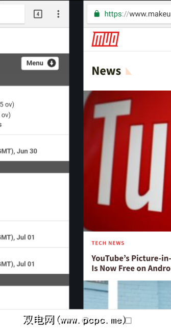 Chrome的三点菜单包含多个Chrome功能。您可以打开新标签页,发起隐身会话,共享页面,更改设置等等。但是,将手指对准那个微小的菜单按钮并不总是很方便。浏览此菜单时有一个手势技巧:从屏幕右上角向下滑动,然后将手指滑到您要选择的菜单选项。松开手指以选择选项。
