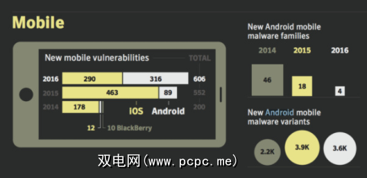 例如,赛门铁克报告[PDF],2014年至2016年间,新的Android恶意软件家族减少,但变体的总数增加。