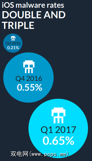 在2015年,Apple删除了数百个感染了XCodeGhost恶意软件的应用程序以及潜在的SSL问题(所有问题均已修复)。在撰写本文时,Apple正在清除不符合其计费要求的第三方应用程序。这包括包含多余代码的应用程序,或尝试在下载后注入替代广告的应用程序。此外,最近的Skycure报告[PDF]探索iOS黑客攻击发现iOS恶意软件每季度增加。