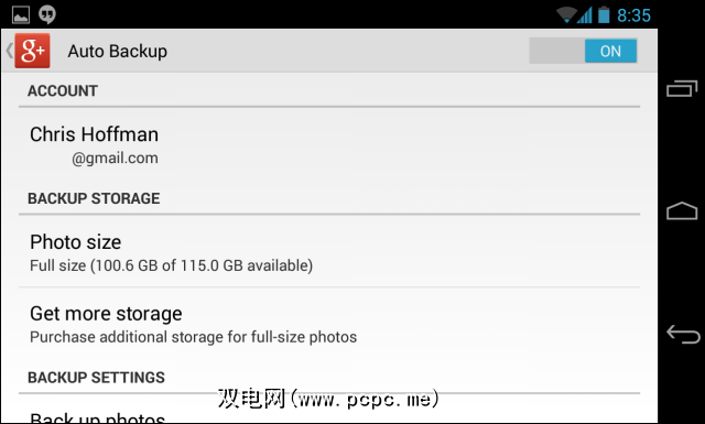 Android现在会提示您设置自动将您的照片上传到Google+照片。这是一项非常有用的功能,可确保您不必再手动从手机上载或复制照片。但是,这显然意味着,如果启用Google,则将您拍摄的所有照片存储在其服务器上。