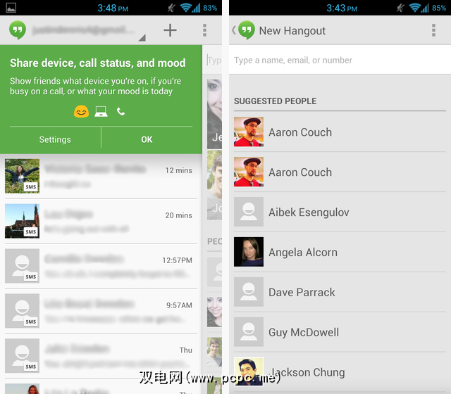 但是环聊的短信集成远非完美。即使您有一个电话号码和Google+帐户的联系人,您的SMS和Google+对话也会被分成两个不同的线程,这根本无法达到目的。