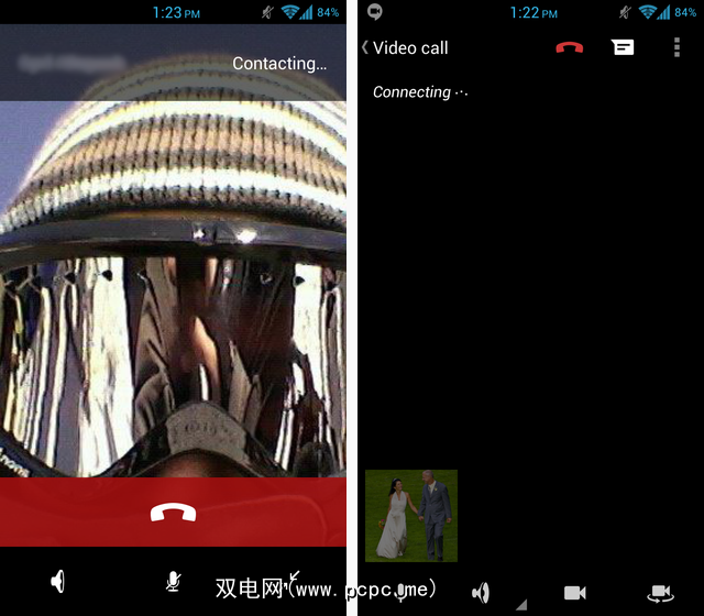 在下面,您可以看到左侧的Messenger语音通话屏幕,突出显示了我朋友的个人资料图片,而右侧,您可以看到环聊开始进行视频通话。