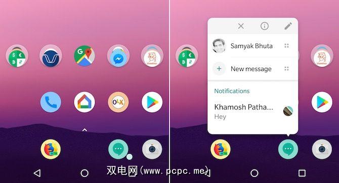 您可以点击并按住应用程序图标以查看新的弹出窗口,该弹出窗口将显示特定应用的所有通知。与iOS不同,Android不会在点中显示未读邮件的数量。