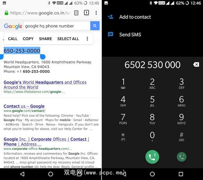 现在,当您选择文本时,Android会尝试帮助您自动选择一个重要元素(例如地址或电话号码),然后提供弹出菜单中的便捷快捷方式。例如,如果您选择了一些看起来像地址的文本,则会获得一个快捷方式,可以直接在Google Maps中打开它。