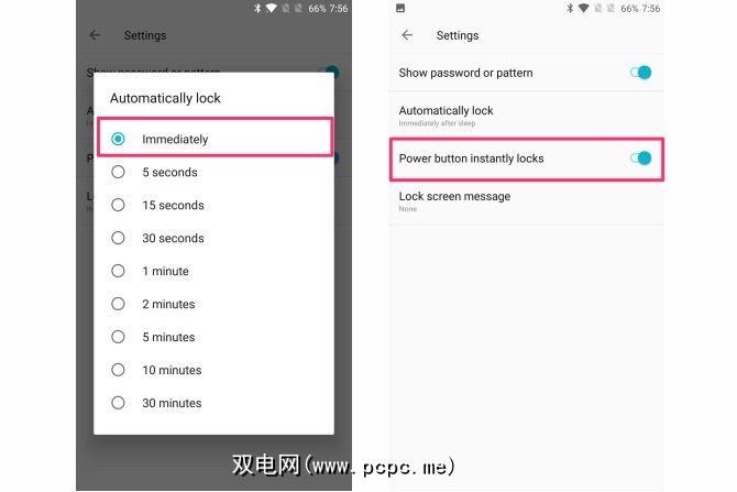 3。启用“自动锁定"和“电源按钮即时锁定"