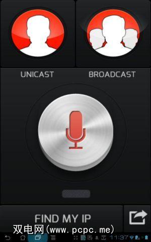 这里的诀窍是确保每个人都连接到Wi-Fi网络,然后单击“查找我的IP"按钮以获取设备的IP地址。交换IP地址。要与其他人交谈,您只需轻按“单播",然后键入要向其广播语音的人的IP地址。